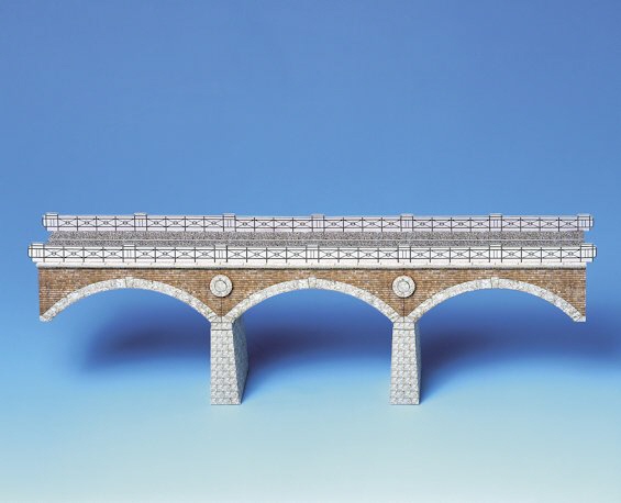 Für die HO-Modellbahn ist die modular aufgebaute Eisenbahnbrücke gedacht. Das Set umfasst drei Bogen. Mit weiteren Sets können Brücken beliebiger Länge zusammengesetzt werden.