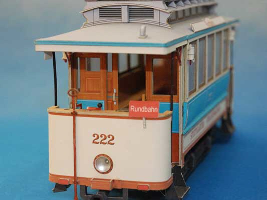 Ein großer und detaillierter Straßenbahnwagen ist der Triebwagen 222, der von 1902 bis 1955 für die Stuttgarter Straßenbahnen (SSB) fuhr. Heute ist er im Stuttgarter Straßenbahnmuseum zu sehen und wird noch für Museumsfahrten eingesetzt. Fahrwerk, Inneneinrichtung, alles ist originalgetreu abgebildet.