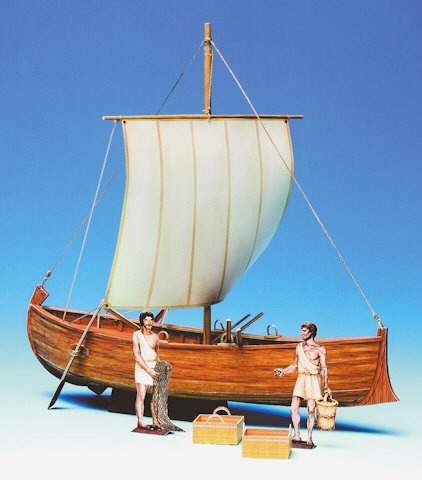 Liebhaber historischer Holzschiffe werden daran ihre Freude haben. Das Modell wurde nach einem Ausgrabungsfund in Israel entwickelt. Das gesunkene Fischerboot vom See Genezareth in Israel hatte schnell seinen Namen gefunden: "Jesus-Boot". Amateur-Archäologen hatten es im Uferschlick gefunden. Wissenschaftler konnten es anhand von Holznägeln genau auf die Zeit Jesu datieren, seine Überreste sichern und im Yigal-Allon-Museum ausstellen. Rekonstruktionen im Maßstab 1:1 kann man auch im Kibbutz Ein-Gev sowie im Bibelhaus am Museumsufer in Frankfurt am Main sehen.